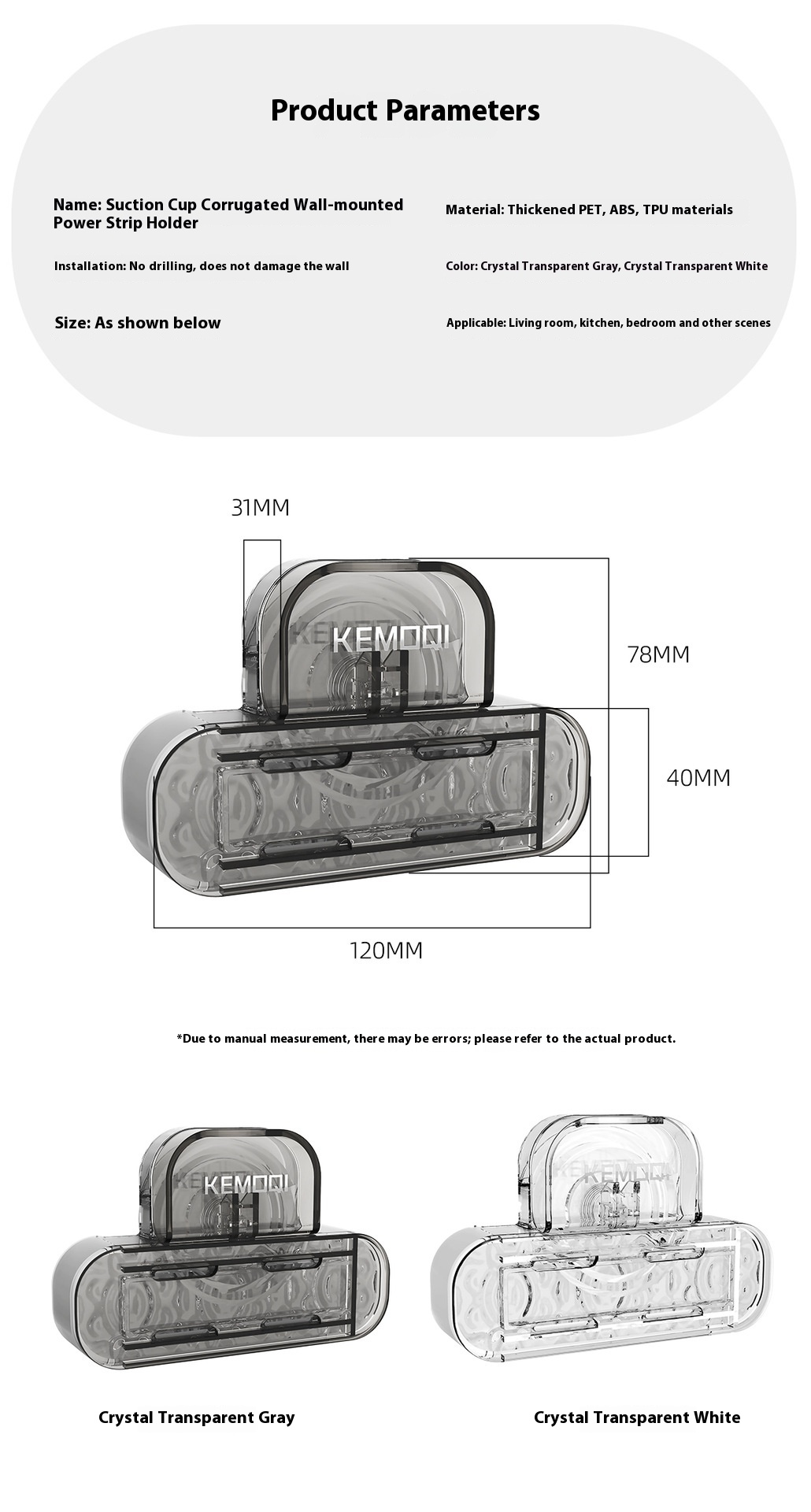 Color: crystal transparent gray, crystal clear