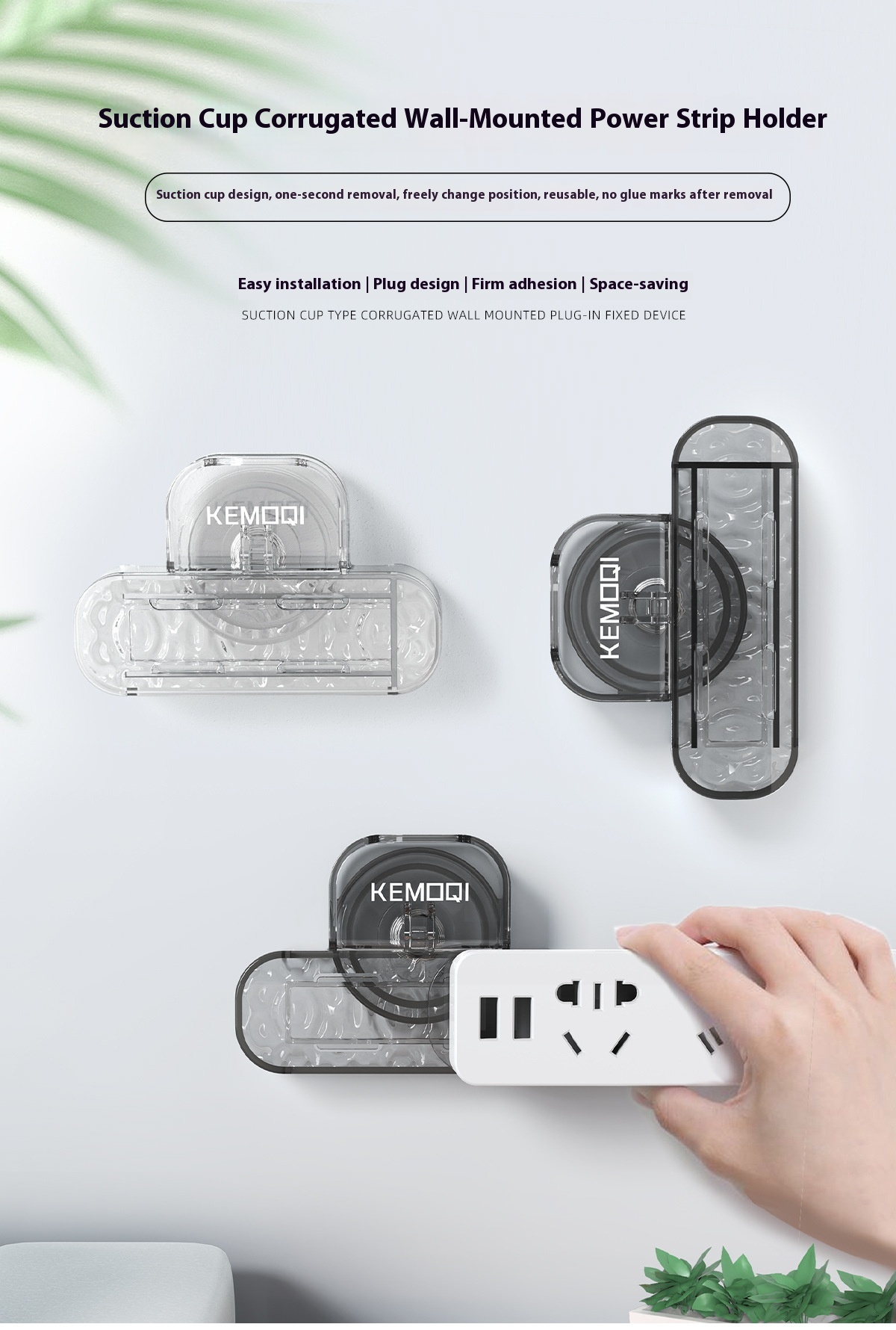 Suction Cup Power Strip Holder Water Ripple Power Strip Holder Punch-free Wall Hanging Multi-functional Socket Organizing Storage Rack