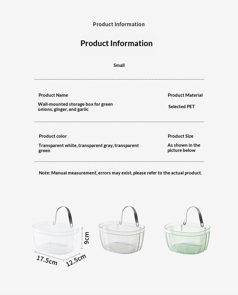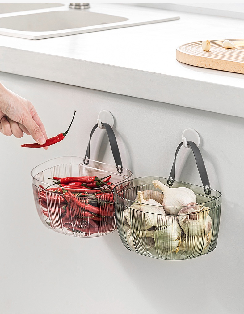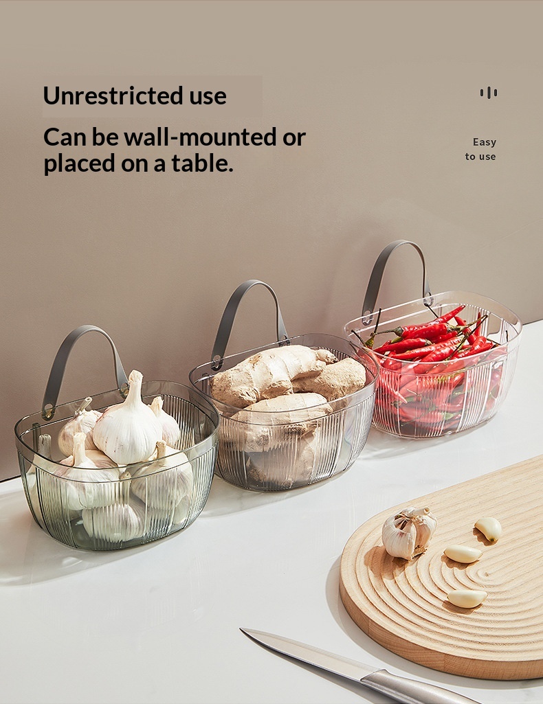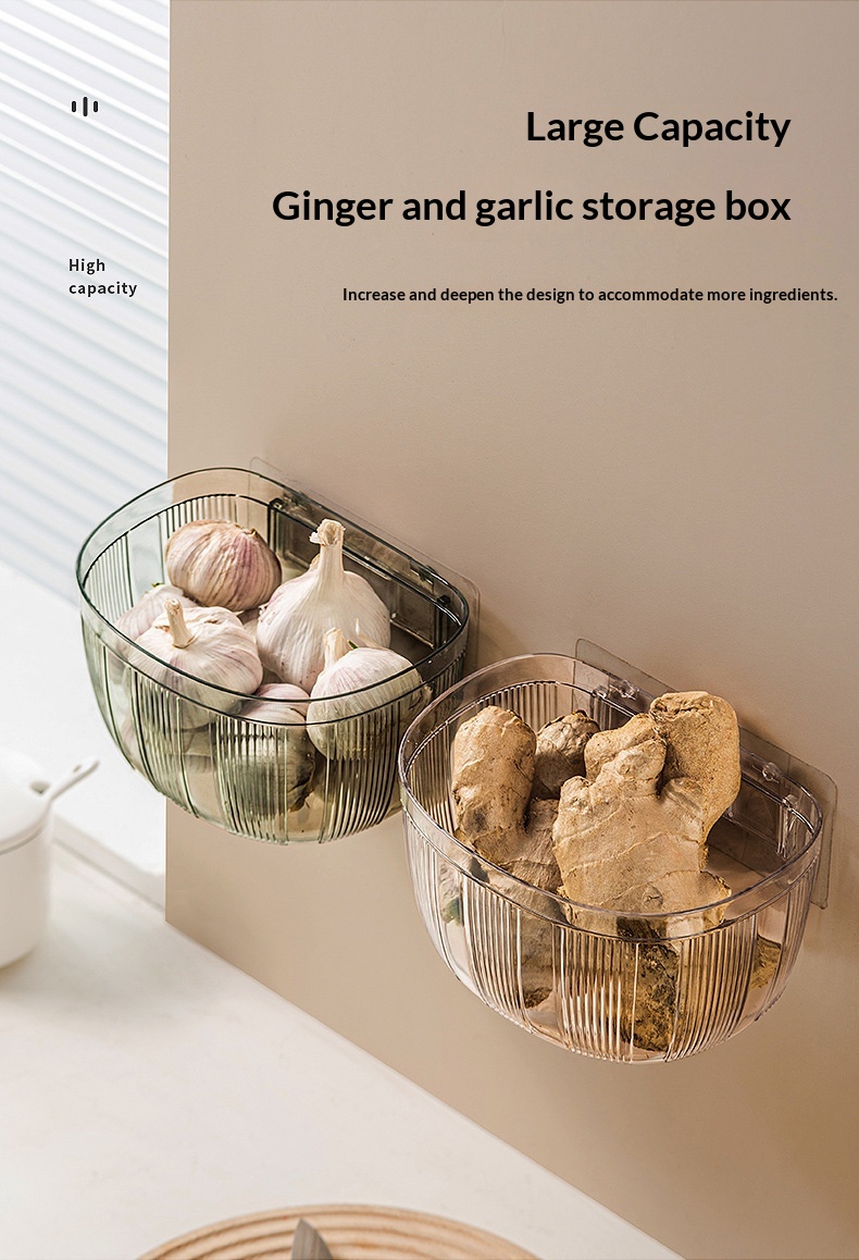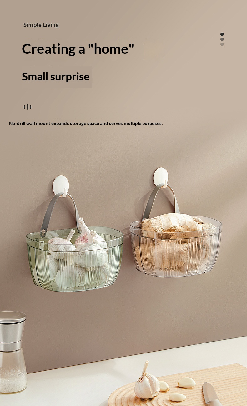 Wall-mounted Storage Basket With Adhesive Backing For Ginger And Garlic